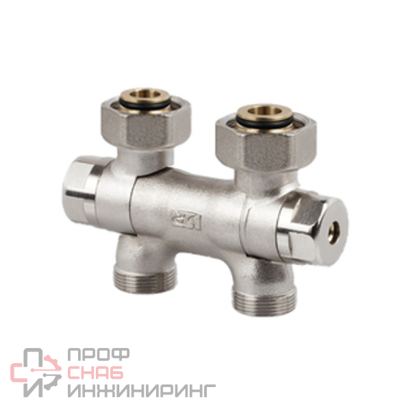 Группа Free Style SR Rubinetterie , двойной запорный клапан, межосевое расстояние 50 мм для одно/двухтрубных систем с ориентируемыми соединениями (для отвода в пол или стену), пошаговая регулировка by-pass, сменное соединение для медных и многослойных труб.