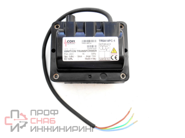 Трансформатор розжига Cofi TRS818PC – устройство, преобразующее входящее напряжение 230 В до высоковольтных параметров 8кВ, и поджигания топлива мощной электрической дугой. Встраивается в узлы розжига горелок, потребляющих жидкое топливо или газ. Корпус отличается компактными габаритами, имеет разъемы для силового провода и кабелей поджига.