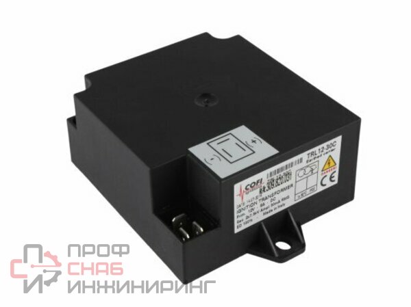 Трансформатор розжига Cofi TRL12-30C разработан с использованием электронных технологий. Предназначен для оснащения узла розжига газовой или жидкотопливной горелки. Характеризуется высокой эффективностью и мощностью зажигания. Преобразует входящее 12-вольтовое напряжение в высоковольтное (2х7,5 кВ) для дальнейшей подачи на поджигающие электроды и образования электрической воспламеняющей дуги.