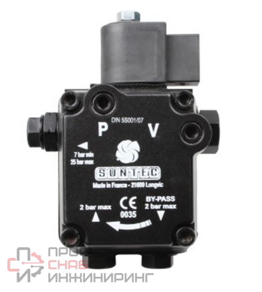 Жидкотопливный насос для дизельных горелок от французского производителя Suntec AS 47 D 1596 6P 0700 является представителем серии AS. К ней относятся одноступенчатые агрегаты с запорным электромагнитным вентилем и золотниковым регулировочным клапаном. Устройство имеет правостороннее расположение выхода на подачу, а вал механизма вращается против часовой стрелки (тип D). Используется в отопительных горелках мощностью до 1000 кВт от известных производителей: Weishaupt, Elco, Baltur, Lamborghini и других.