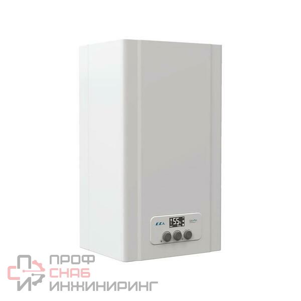 Турбированный газовый котел серии E.C.A Gelios Plus представляет собой высокоэффективное оборудование, предназначенное для отопления жилых помещений и подачи горячей воды. Преимущественными особенностями котла является наличие дисплея, на экране которого отображается вся необходимая информация о работе котла, а также современная система автоматического управления позволяющая осуществить подключение датчика наружной температуры и поддерживающая эффективную работу оборудования в режиме «теплый пол». В качестве достоинств данных котлов выделяются и плавный розжиг, непрерывная электронная автоматическая модуляция интенсивности горения газа, экономичность. Немаловажным фактором является и то, что в случае необходимости, есть возможность перенастроить работу котла с природного на сжиженный газ. Прибор отличается простотой управления и элегантным корпусом белого цвета. Важным достоинством является и то что при использовании E.C.A Gelios Plus отпадает необходимость в установке дополнительного водогрейного оборудования (котел является двухконтурным — отопление/ГВС).
