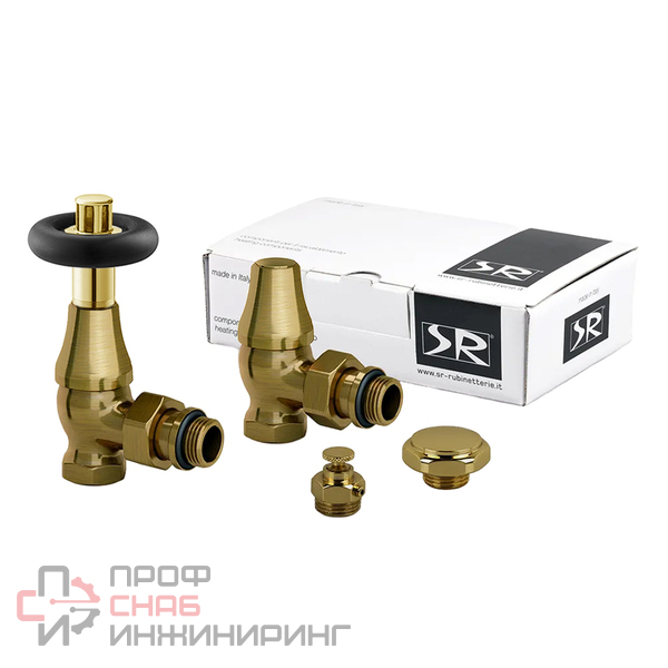 В комплект термостатический SR Rubinetterie серия Old Style входит: - вентиль на подачу угловой, термостатический, соединение для железной трубы, хвостовик с герметичной прокладкой; - запорный клапан угловой, соединение для железной трубы, хвостовик с герметичной прокладкой; - заглушка для радиатора; - воздухоотводчик для радиатора. Технические характеристики. Рабочая среда: вода, гликолевые растворы. Максимальный процент гликоля: 30%. Максимальное рабочее давление: 10 бар. Максимальная рабочая температура: 100°C. Минимальная устанавливаемая температура: 7°C. Корпус: штампованная латунь CW617N - UNI EN 12165. Гайка: штампованная латунь CW617N - UNI EN 12165. Колпачок запорного клапана: штампованная латунь CW617N - UNI EN 12165. Внутренние механизмы: прутковая латунь CW614N - UNI EN 12164. Маховик регулировки: PA6. Уплотнительные элементы: резина EPDM PEROX.