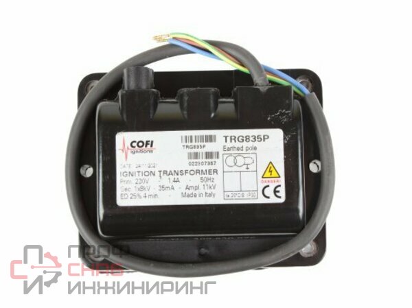 Трансформатор розжига Cofi TRG835P подходит для широкого спектра применений. Обеспечивает выработку высоковольтного напряжения для получения поджигающей искры и воспламенения топлива. Устройство с непостоянным рабочим циклом в компактном корпусе, с кабелем питания.