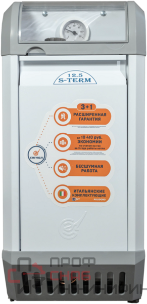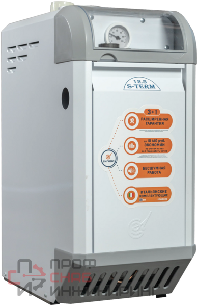 Сигнал S-Term КОВ-7 СКс – это газовый напольный одноконтурный водотрубный котел, который предназначен для отопления помещений площадью до 70 м². Относятся к типу энергонезависимых устройств, оборудованных встроенной атмосферной горелкой. Это существенно повышает надёжность котла и его экономичность, а высокое качество технического уровня сборки прибора позволяет ему наилучшим образом проявлять себя в местах, где бывают частые перебои электроснабжения.