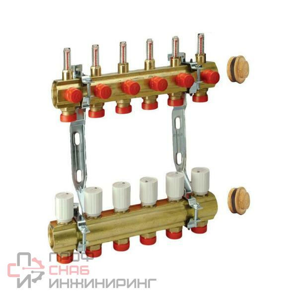 Комплект коллекторов для комплектации смесительного узла R557R-1, предварительно собранный на кронштейнах, с расходомерами (0,5-5 л/мин.). Латунный. Для подключения трубы медной, пластиковой, металлопластиковой, использовать соответствующие адаптеры. Межосевое расстояние отводов 50 мм.Рабочая температура 5-110°С.Состав:- 1 коллектор подачи R553M.- 1 коллектор обратный R553V.- 2 кронштейна регулируемых R588L.- 2 заглушки с уплотнительным кольцом R592D.