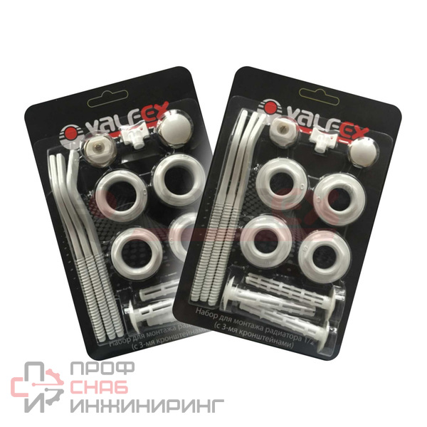 Комплекты для монтажа радиаторов VALFEX предназначены для монтажа алюминиевых и биметаллических радиаторов с присоединительным размером верхнего и нижнего коллекторов 1" (внутренняя резьба). В состав комплекта включены четыре футорки 1 x 3/4" (1 x 1/2’’) – две правые и две левые.Футорки снабжены силиконовыми прокладками. Также в комплект включены пробка для футорки, ручной самоуплотняющийся воздухоотводчик, ключ для воздухоотводчика, кронштейны и дюбели для крепления радиатора к стене. Кронштейны, как и футорки выполнены из оцинкованной стали, окрашены белой (RAL 9010) эпоксидной эмалью. В качестве теплоносителя в системе может применяться как вода, так и незамерзающая жидкость.