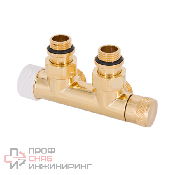 Узел SR Rubinetterie угловой для нижнего подключения радиаторов: вентиль на подачу ручной регулировки, преобразуемый в термостатический, с механизмом предварительной настройки, запорный клапан. Межосевое расстояние 50 мм, соединение для медных или многослойных труб.