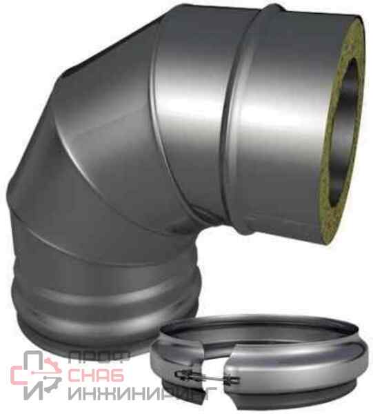 Отводы сэндвич-дымохода 87 градусов изготавливаются из цилиндрических секций, соединенных шовной сваркой. Сэндвич-отводы 87° состоят из четырех сегментов. Такое количество секций необходимо для увеличения, согласно нормативам, радиуса поворота дымохода до значения диаметра дымовой трубы. При меньшем радиусе углов поток дымовых газов встречает препятствие в виде стенки дымохода и замедляется, что может приводить к перебоям в работе котла и задымлению помещения.