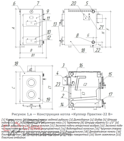 Универсальный отопительный котел Практик-22 В с варочной плитой предназначен для систем водяного отопления помещений общей отапливаемой площадью до 220м2. Для закрытой или открытой системы с принудительной циркуляцией теплоносителя. Может использоваться как самостоятельный или резервный источник тепловой энергии к существующим системам отопления с газовыми, жидкотопливными или электрическими котлами.