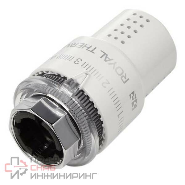 Термоголовка Royal Thermo Design предназначена для установки на радиаторы отопления в жилых помещениях, административных учреждениях. На корпус нанесена маркировка, которая вместе с прозрачным пластиковым указателем позволяет точно выбирать нужный параметр. Используется для полной блокировки подачи тепла и помогает экономить ресурс, оптимизировать расходы на оплату коммунальных услуг.