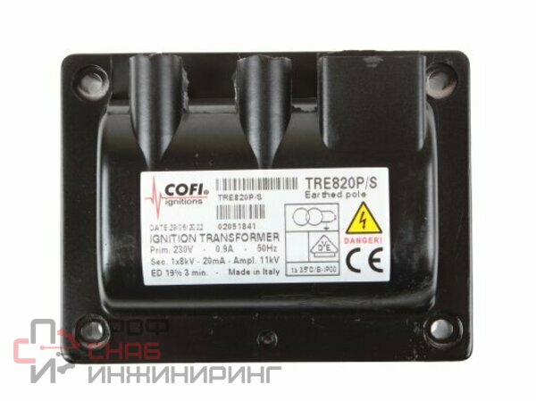Трансформатор розжига Cofi TRE820P/S используется в системе розжига горелки. Многократно повышает входящий ток, обеспечивая выдачу высоковольтного напряжения и воспламенение горючей смеси искровым разрядом. Для безопасной эксплуатации и стабильной работы устройства использована надежная тепло-, электроизоляция.