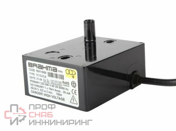 Трансформатор розжига Brahma TC1SVCA предназначен для получения высоковольтной поджигающей искры за счет повышения входящего сетевого напряжения до высоковольтного, и розжига газового или жидкого топлива. Место применения – горелки бытового, промышленного назначения.