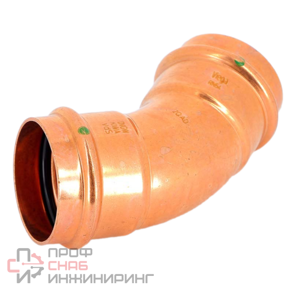 Угол пресс 45 градусов медь Profipress VIEGA 54 - фитинг, применяемый для соединения медных труб при монтаже систем холодного и горячего водоснабжения, систем отопления, сантехнического оборудования.