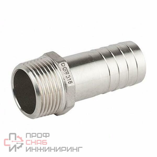 Штуцер для присоединения шланга с наружной резьбой Genebre- фитинг из нержавеющей стали для шланга. Применяется для подключения эластичных шлангов к запорной, регулирующей и трубной арматуре в промышленных системах.