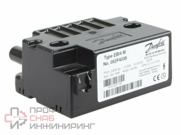 Трансформатор поджига Danfoss служит для комплектации горелок. Обеспечивает подачу напряжения, необходимого для поджига топлива при запуске горелки.