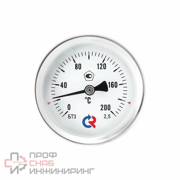 Термометр биметаллический тип БТ (корпус-сталь) Росма, предназначен для измерения температуры жидкостей и газов в отопительных и санитарных установках, в системах кондиционирования и вентиляции. Принцип действия термометров БТ основан на зависимости деформации чувствительного элемента от измеряемой температуры. В качестве чувствительного элемента используется биметаллическая пружина. Биметаллическая пружина изготавливается из двух прочно соединенных металлических пластин, имеющих различные температурные коэффициенты линейного расширения. При изменении температуры пружина изгибается и вращает стрелку термометра. Один конец пружины закреплен внутри штока, а к другому присоединяется ось стрелки.