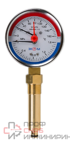 Термоманометр объединяет в одном корпусе манометр и термометр, имеет две шкалы – давление и температура. Прибор комплектуется клапаном, позволяющим демонтировать термоманометр без разгерметизации системы.