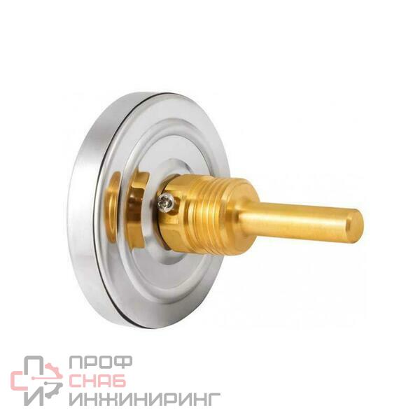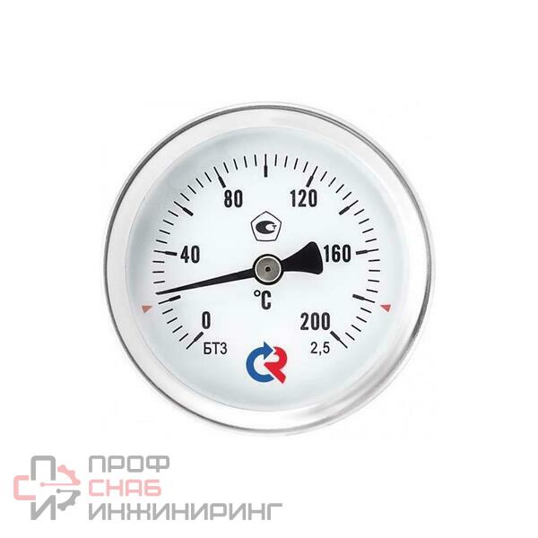 Тип БТ, серия 211. Термометр биметаллический (осевое присоединение) в комплекте с защитной латунной* погружной гильзой. Прибор предназначен для измерения температуры жидкостей, пара и газов в отопительных и санитарных установках, в системах кондиционирования и вентиляции. Принцип действия прибора основан на зависимости деформации чувствительного элемента от измеряемой температуры. В качестве чувствительного элемента используется биметаллическая пружина. Она изготавливается из двух прочно соединенных металлических пластин, имеющих различные температурные коэффициенты линейного расширения. При изменении температуры пружина изгибается и вращает стрелку термометра. Один её конец закреплен внутри штока, а к другому присоединяется ось стрелки. Корпус прибора изготавливается из коррозионностойкой стали, шток — из нержавеющей стали.Область применения: системы кондиционирования, теплоснабжения, водоснабжения.