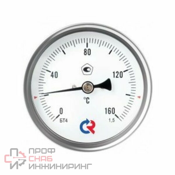 Термометр биметаллический тип БТ (корпус-сталь) Росма, предназначен для измерения температуры жидкостей и газов в отопительных и санитарных установках, в системах кондиционирования и вентиляции. Принцип действия термометров БТ основан на зависимости деформации чувствительного элемента от измеряемой температуры. В качестве чувствительного элемента используется биметаллическая пружина. Биметаллическая пружина изготавливается из двух прочно соединенных металлических пластин, имеющих различные температурные коэффициенты линейного расширения. При изменении температуры пружина изгибается и вращает стрелку термометра. Один конец пружины закреплен внутри штока, а к другому присоединяется ось стрелки.