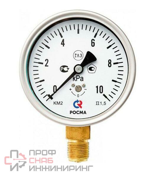 Тип КМ (КМВ). Напоромер (манометр низкого давления) применяется для измерения давления сухих, газообразных сред, неагрессивных к медным сплавам.Принцип действия манометров КМ основан на зависимости деформации чувствительного элемента от измеряемого значения кПа. В качестве чувствительного элемента используется мембранная коробка. Под воздействием измеряемого давления центр мембранной коробки перемещается и с помощью специального передаточного механизма вращает стрелку прибора.