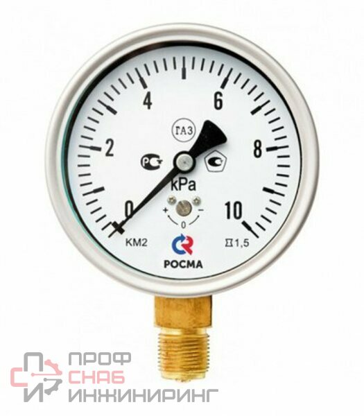Тип КМ (КМВ).Напоромер (манометр низкого давления) применяется для измерения давления сухих, газообразных сред, неагрессивных к медным сплавам.Принцип действия манометров КМ основан на зависимости деформации чувствительного элемента от измеряемого значения кПа. В качестве чувствительного элемента используется мембранная коробка. Под воздействием измеряемого давления центр мембранной коробки перемещается и с помощью специального передаточного механизма вращает стрелку прибора.Область применения напоромеров: газораспределение, котельное, медицинское и лабораторное оборудование.