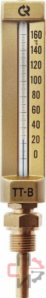 ТТ-В-150/150. П13 G1/2 (0-200С). Термометр технический жидкостный предназначен для измерения температуры неагрессивных жидких и газообразных сред в условиях высоких динамических нагрузок в различных отраслях промышленности в пределах от −30 до +200 °С.Термометр состоит из защищенной стеклянной оболочкой капиллярной трубки с резервуаром, заполненным термометрической жидкостью, защитного корпуса и защитной гильзы. Шкала термометра нанесена на наружной поверхности капиллярной трубки. Верхняя часть капиллярной трубки (со шкалой) находится в корпусе, а нижняя (с резервуаром) — в гильзе.