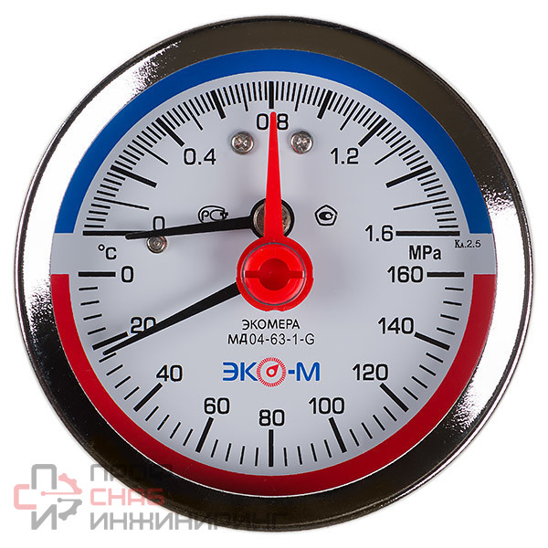 Термоманометр — комбинированный прибор, предназначенный для измерения температуры и избыточного давления неагрессивных к медным сплавам сред в системах теплоснабжения и водоснабжения.