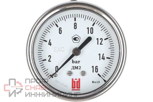 Манометр ДМ 2 для измерения давления газообразных и жидких, не сильно вязких и не кристаллизирующихся сред, не агрессивных по отношению к медным сплавам (вода, пар, газ, масло, керосин, бензин, дизельное топливо и др). Устанавливается в местах с повышенной вибрацией или при наличии пульсаций.