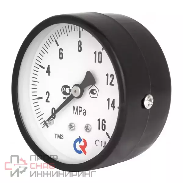 Тип ТМ (ТВ, ТМВ), серия 10. Манометр стандартный используется для измерения избыточного, вакуумметрического или мановакуумметрического давления неагрессивных к медным сплавам жидких и газообразных, не вязких и не кристаллизующихся сред. При этом рабочая температура измеряемой среды - до 150 °C. Корпус манометров в стандартном исполнении выполнен из стали, механизм — из латунного сплава. Принцип действия манометров приборов основан на зависимости деформации чувствительного элемента от измеряемого давления. В качестве чувствительного элемента используется трубка Бурдона. Под воздействием измеряемого давления свободный конец трубки перемещается с помощью специального механизма и вращает стрелку манометра.По типу исполнения манометры производятся с радиальным, осевым или эксцентрическим расположением штуцера. Приборы поставляются без фланца, но в зависимости от конструкции панели, могут комплектоваться передним / задним фланцем (фланцевый манометр) с целью его последующей установки.Область применения: все отрасли промышленности, включая теплоснабжение, водоснабжение, вентиляцию и машиностроение.