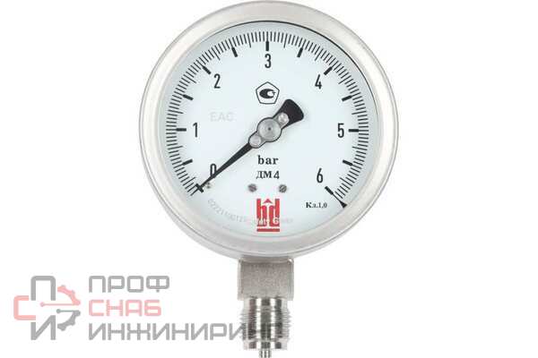 Манометр общетехнический с трубчатой пружиной. Тип ДМ (МОДИФИКАЦИЯ 4)Манометр применяется для измерений давления газообразных и жидких, не сильно вязких и не кристаллизирующихся сред, не агрессивных по отношению к нерж. стали (аммиак, щелочные и солевые растворы и др).Используются в сложных эксплуатационных и технологических условиях, в том числе в местах с повышенной вибрацией и пульсацией в пищевой, пивоваренной и фармацевтической промышленности, в криогенной технике, химической и нефтехимической индустрии, в ядерных и холодильных установках, в насосах, прессах, компрессорах, турбинах, дизельных двигателях и т.п. Рекомендуется для применения с разделителями сред: РМ5319, РМ5320, DA, DB, DE, DH, DJ и др.