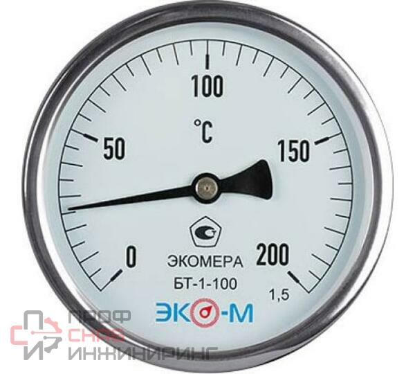 Биметаллический термометр ЭКО-М ЭКОМЕРА БТ-1-100, 0-200C, L=40 БТ-1-100-200С-L100 предназначен для измерения температур в системах кондиционирования, теплоснабжения, водоснабжения и универсального пользования.