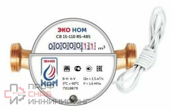 Счетчик воды ЭКО НОМ СВ15-110 RS-485 со встроенным электронным модулем считывателя показаний, предназначен для использования в системах автоматизированного сбора, контроля и учета энергоресурсов (АСКУЭР). Считыватель производит подсчет оборотов модулярного диска водосчётчика и передает измеренные значения по интерфейсу RS485.