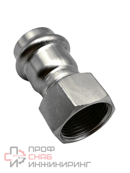 Пресс-фитинг из нержавеющей стали с внутренней резьбой обеспечивает соединение тонкостенной стальной трубы с резьбовым элементом монтируемой системы. Материал уплотнения – эластомер EPDM Sh70. Пресс-соединение – бесштуцерное. Обжатие производится с помощью пресс-инструмента V-профиля.