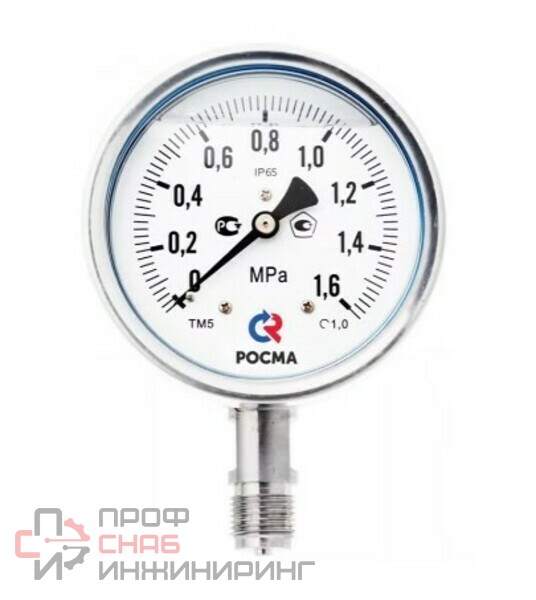 Тип ТМ (ТВ, ТМВ), серия 21. Манометр коррозионностойкий выполнен полностью из нержавеющей стали. Применяется для измерения давления агрессивных жидких и газообразных, не вязких и не кристаллизующихся измеряемых сред с температурой до 200 °C.Эти промышленные манометры могут использоваться в условиях агрессивной окружающей среды, повышенной вибрации и при измерении переменного давления. Повышенная устойчивость к воздействию окружающей среды — степень защиты приборов IP65. Может использоваться в сборе с разделителем сред.Область применения: теплоснабжение, водоснабжение, горнодобывающая промышленность, нефтехимическая промышленность, энергетика, машиностроение.