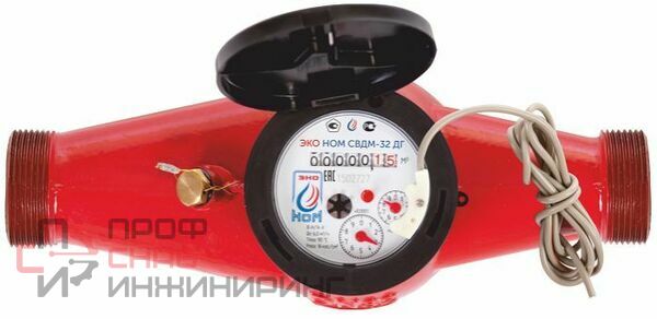 Счетчик воды ЭКО НОМ-СВДМ-32 ДГ+КМЧ (многоструйный) (с латунным комплектом монтажных частей, комплектуется импульсным датчиком - магнитоуправляемым герметизированным контактом (герконом)) Устанавливается в многоквартирных домах, объектах коммунального хозяйства и частном секторе, на предприятиях и промышленных объектах. Материал счетного механизма - износостойкая пластмасса; Материал вала - нержавеющая сталь; Материал подшипника - однородный монокристаллический сапфир; Cтальной опорный стержень из нержавеющей стали; Материал корпуса - чугун; Встроенная антимагнитная защита; Встроенный фильтр; Специальная конструкция крыльчатки – защищена лопастным колесом; Разделение потока перед крыльчаткой на 6-8 струй для снижения турбулентности; Более точные показания и длительный ресурс по сравнению с одноструйными приборами из-за отсутствия турбулентности потока; Многоступенчатая система контроля качества; Соответствие СанПиН 2.1.4.1074-0.