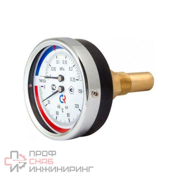 Термоманометр аксиальный — комбинированный прибор, предназначенный для измерения температуры и избыточного давления неагрессивных к медным сплавам сред в системах теплоснабжения и водоснабжения. Термоманометр осевой объединяет в одном корпусе манометр и термометр, имеет циферблат с двумя шкалами и две указательных стрелки. Одна шкала служит для отсчета давления, другая — температуры. Прибор комплектуется клапаном, который служит для удобства подключения прибора, а также позволяет демонтировать термоманометр без разгерметизации (слива) системы и остановки технологического процесса. Область применения аксиальных термоманометров: системы отопления, водоснабжения, бойлеры, паровые котлы.