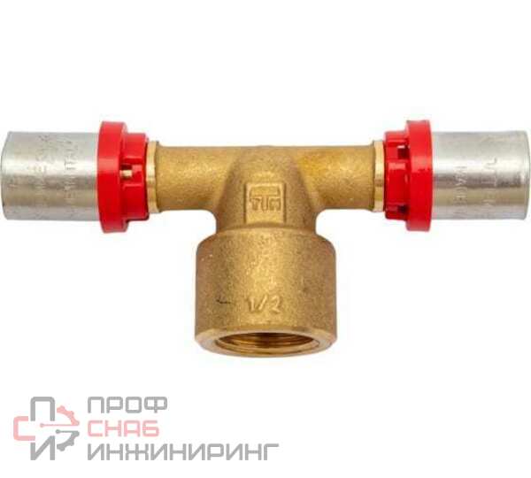 Тройник пресс TIEMME. Предназначен для разветвления потока воды на два направления. Имеет два выхода для соединения металлопластиковых труб и один выход.