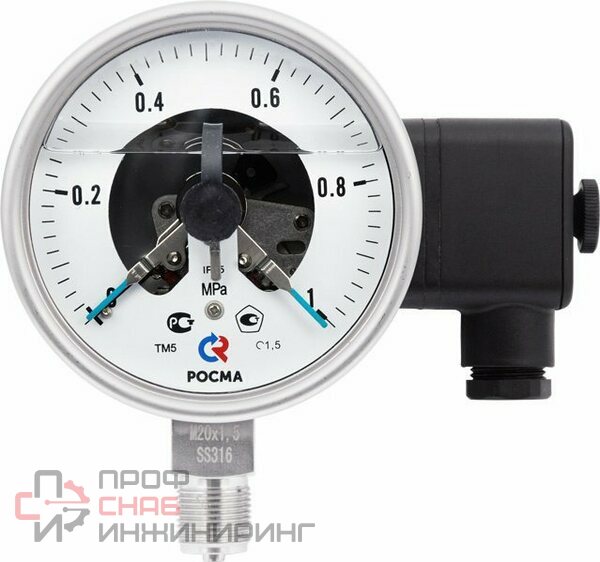 Промышленный манометр, устойчивый к воздействию агрессивных измеряемых сред, с возможностью гидрозаполнения. Оснащен электроконтактной приставкой для управления внешними электрическими цепями в схемах сигнализации, автоматики и блокировки технологических процессов в условиях повышенной вибрации и при измерении переменного давления. Электроконтактная группа оснащена указателями для индикации уставок, настройка которых осуществляется с помощью специального ключа, поставляемого в комплекте с прибором.При измерении давления с высокими динамическими нагрузками, прибор необходимо заполнить силиконом.