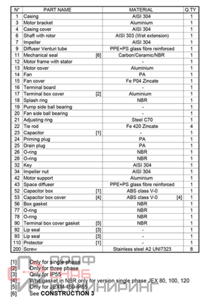 | Рабочее колесо (материал) | Нержавеющая сталь |