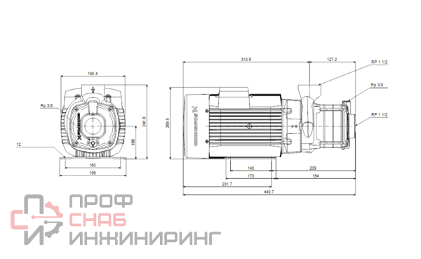 | Присоединение на всасывающей стороне | Rp 1½ |