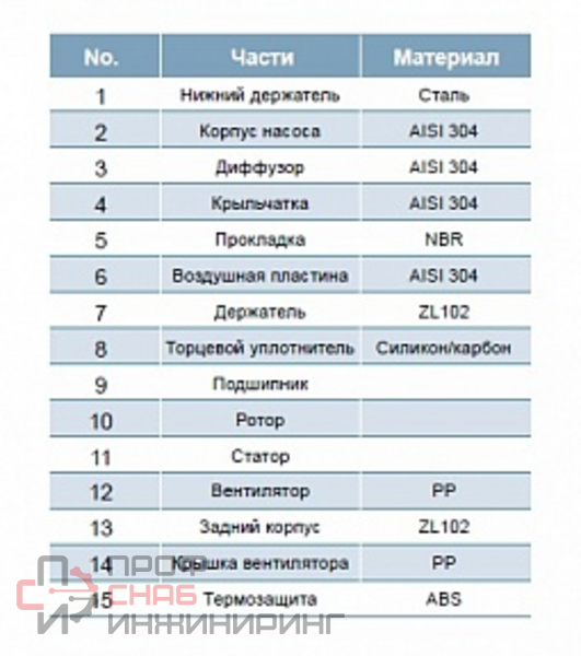 | Рабочее колесо (материал) | Нержавеющая сталь |