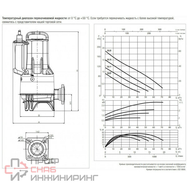 | Максимальная температура перекачиваемой жидкости, °С | 50 |