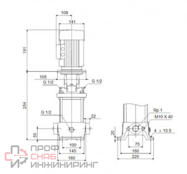 Вертикальный многоступенчатый центробежный насос Grundfos CR 1S-3 A-A-A-E-HQQE с всасывающим и напорным патрубками, расположенными на одном уровне ("ин-лайн"), что обеспечивает возможность установки в горизонтальной однотрубной системе. Головная часть и основание насоса из чугуна - все остальные контактирующие с перекачиваемой жидкостью детали из нержавеющей стали. Вращение передается через разъемную муфту. Подсоединение к трубопроводу с помощью овальных фланцев с внутренней резьбой Rp. Насос оснащен асинхронным 3-фазным электродвигателем на лапах, с воздушным охлаждением.