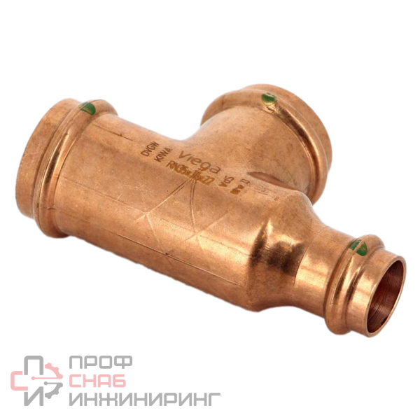 Тройник пресс медь Profipress VIEGA 35x35x22 - редукционный фитинг, применяемый при необходимости разветвления систем холодного и горячего водоснабжения, систем отопления, сантехнического оборудования в монтаже медных труб.