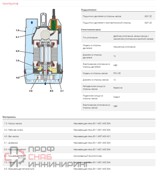 | Рабочее колесо (материал) | Нержавеющая сталь |