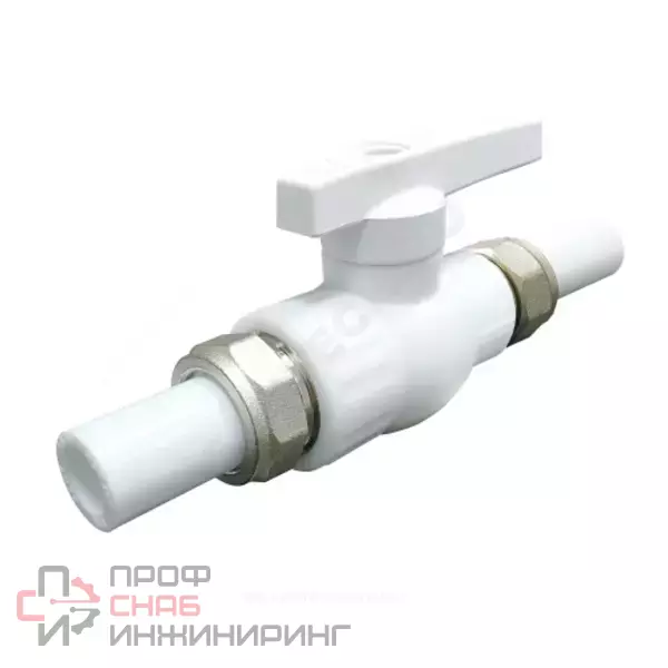 Кран шаровой полнопроходной с двусторонним разъемным соединением – вид запорной арматуры, применяющийся для перекрытия потока жидкости в трубах. Разъёмное соединение позволяет, при необходимости, демонтировать кран и установить на его место прямую муфту, или другой фитинг. Изделие может использоваться несколько раз. Металлические детали в кране надежно соединены с полипропиленовыми, что предотвращает их разбалтывание.