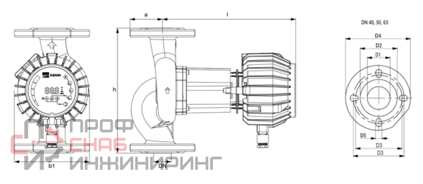 | Присоединение на напорной стороне | Фланцевое DN65 |