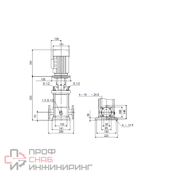 | Присоединение на напорной стороне | Фланцевое DN32 |