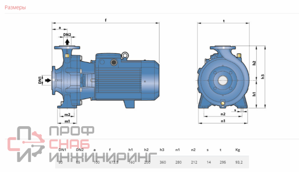 | Присоединение на напорной стороне | Фланцевое DN65 |