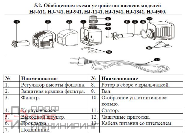 Насос Vodotok HJ-741 - предназначен для создания фонтанов, горок или водопадов в декоративных водоемах, а также в больших аквариумах. Преимуществами данных насосов являются простота и компактность конструкции, высокая экономичность, оптимальные характеристики. Насосы моделей HJ-311, HJ-611, HJ-4500 оснащены регулятором, позволяющим изменять высоту фонтана. Эти насосы не предназначены для перекачивания агрессивных и абразивных веществ, соленой воды, легковоспламеняющихся, взрывоопасных жидкостей и питьевого водоснабжения.